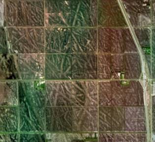 Iceberg keel scours, Lake Agassiz lake bed, 3 miles south of Pembina ND (GoogleEarth snapshot) |