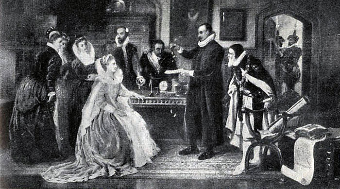 "Dr. William Glbert Showing his Experiment on Electricity to Queen Elizabeth and Her Court" by Arthur Ackland Hunt [~late 1800s]